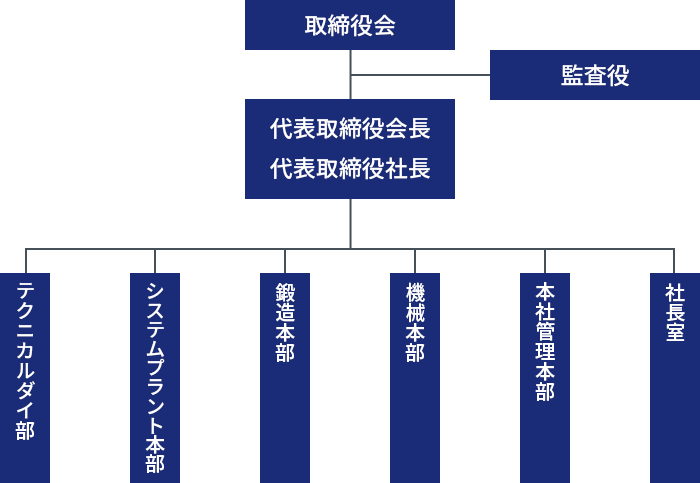 | 事業内容 | 1.たばこ製造用機械器具ならびに同装置の製作設置工事および販売 2.鍛工品の製作および販売 3.産業機械の製作および販売 4.化学機械ならびに化学繊維機械の製作および販売 5.不動産の賃貸 6.古物営業法に基づく古物商 7.前各号に関連する事業 |
