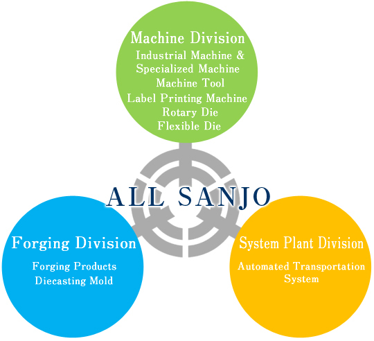 Consistently pursuing high accuracy and precision, we are dedicated to developing a wide range of products such as industrial machines, machine tools, printing machines, rotary dies and flexible dies. We always combine existing technologies with technical innovation, accommodate customers’ needs based on our thorough market research and strongly committed to developing new products. Therefore, we promise that we continue providing excellent products. With the latest mechatronics, Sanjo Machine Works’ products have received a high evaluation overseas as well as demestically and earned confidence worldwide.