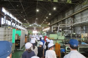 はじめて見る迫力の鍛造工場に、少々びっくりしている様子でしたが、皆さん楽しく、ルールを守って見学していました。